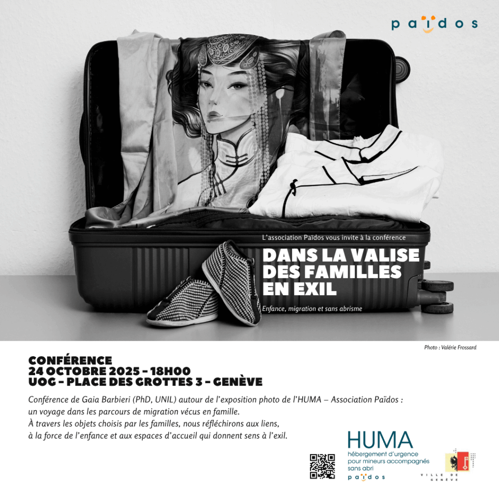 À l’occasion de l’exposition de photos de l’HUMA – Association Païdos, la chercheuse et clinicienne Gaia Barbieri (PhD, UNIL) proposera une conférence sur les parcours de migration vécus en famille.